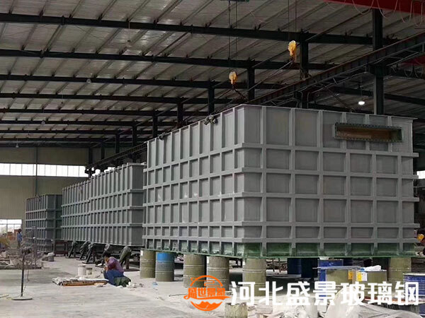 根據(jù)未使用的介質(zhì)和溫度,玻璃鋼方槽由未使用的樹脂進行模具制作,研磨膏鋪設(shè)到一定厚度后,固化后去除內(nèi)部磨料,根據(jù)未使用的鱗片制作外鋼骨架,起到加固外墻的作用。